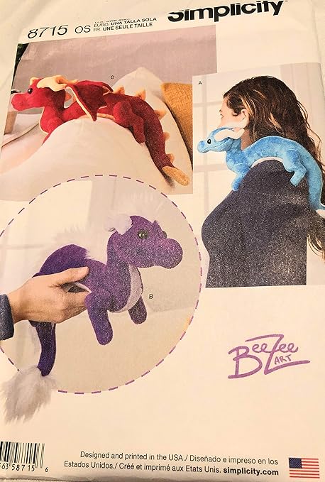 Amazon Com Simplicity 8715 Children S Stuffed Animal Dragon Toy Sewing Patterns By Beezee Art One Size Only Arts Crafts Sewing